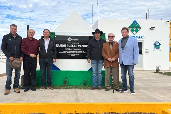 Estación Francisco, Ahome, Sinaloa. – En honor y reconocimiento por su ejemplar aportación al desarrollo de la Asociación de Agricultores del Río Fuerte Sur, se develó la Placa de la Unidad de Servicios Estación Francisco de AARFS A.C., la cual desde ahora lleva por nombre “Ramón Ruelas Vázquez”, esto en reconocimiento a su destacada labor, dedicación y compromiso en el desarrollo agrícola de la región, así también de nuestro organismo agrícola.