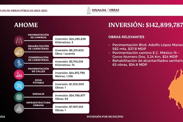 Con estas inversiones, se espera mejorar significativamente la infraestructura y calidad de vida de los habitantes de Ahome, contribuyendo al desarrollo y bienestar de la comunidad.