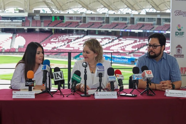 Culiacán, Sinaloa 06 de septiembre del 2022. Desde las instalaciones del Estadio de Tomateros la presidenta del Sistema DIF Sinaloa Dra. Eneyda Rocha Ruiz anunció el programa “Cuadrangular del Bienestar de DIF” que tiene como objetivo realizar 4 juegos con causa para operaciones de cardiopatía en niños de 0 meses a 16 años de edad.