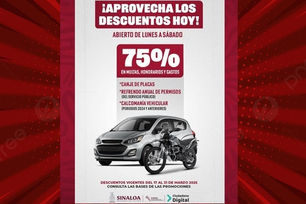Aprovecha los DESCUENTOS del Gobierno de Sinaloa en trámites vehiculares