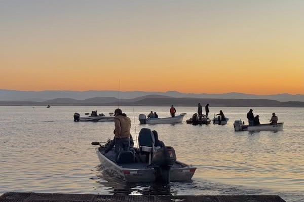 Más de 150 pescadores se dieron cita está fría mañana en la Presa Josefa Ortiz de Domínguez.