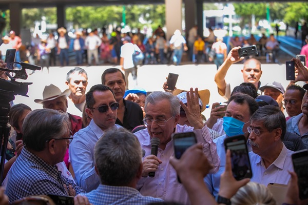 Culiacán, Sinaloa, a 27 de Abril de 2023.- Como parte de la política estatal de atención prioritaria a grupos vulnerables, el Gobernador Rubén Rocha Moya, atendió personalmente a un grupo de ciudadanos que hicieron acto de presencia en Palacio de Gobierno para solicitar lotes de terreno y acceso a vivienda social, quienes forman parte de la Coordinadora Estatal por el Derecho Humano a la Vivienda y Reservas Territoriales, organización integrada por diferentes agrupaciones estatales, cuyos líderes, Marco Antonio García Espinoza, Miguel Ángel Gutiérrez Sánchez, Oscar Loza Ochoa y Noé Salvador Rodríguez Peñuelas, tuvieron una reunión previa con el mandatario estatal.