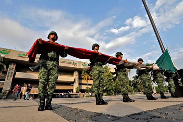Culiacán, Sinaloa, 13 de septiembre de 2022.- Autoridades civiles y militares conmemoraron el aniversario luctuoso número 175 de los niños héroes de Chapultepec con un izamiento de bandera a media asta y con Honores de Ordenanza en la plaza cívica de Palacio de Gobierno.