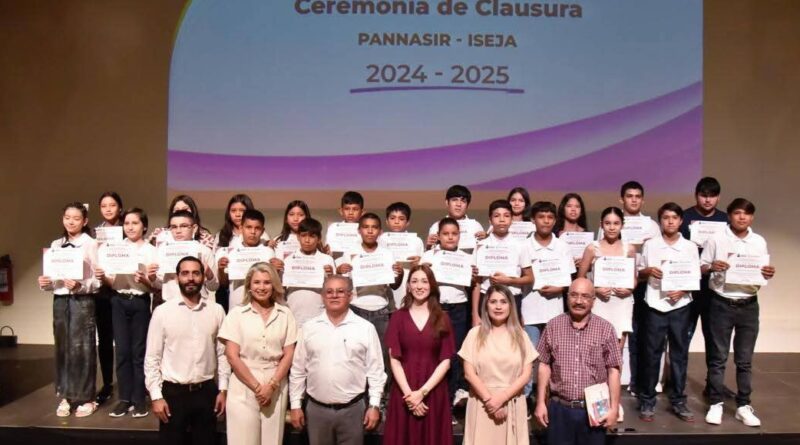 Los Mochis, Ahome, Sinaloa, a 18 de Julio del 2025.- En representación del Presidente Municipal Antonio Menéndez De Llano Bermúdez, el Secretario del Ayuntamiento de Ahome, Cutberto Ríos Beltrán, encabezó la ceremonia de graduación del programa PANNASIR, acompañado por la Presidenta del Sistema DIF Ahome, Marissa Menéndez De Llano Chávez; la Directora del organismo, Nancy Janeth Niebla Valdez; el Coordinador de ISEJA en la Zona Norte, Rosendo Bojórquez Ceballos; Kiabeth Medellín Lara, Directora de Educación; y Arturo Gastélum Herrera, Coordinador del Programa PANNASIR.