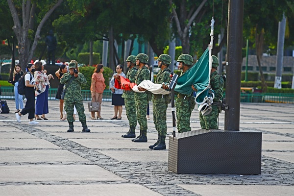 Culiacán, Sinaloa, 27 de septiembre de 2022.- Autoridades civiles y militares conmemoraron el aniversario número 201 de la Consumación de la Independencia de México con un izamiento de bandera a toda asta y con Honores de Ordenanza en la plaza cívica de Palacio de Gobierno.