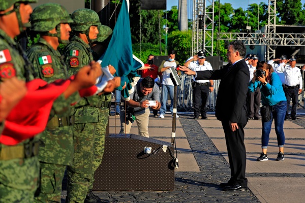Culiacán, Sinaloa, 15 de septiembre del 2022.- Autoridades civiles y militares conmemoraron el aniversario número 212 del Grito de Independencia con un izamiento de bandera a toda asta y con Honores de Ordenanza en la plaza cívica de Palacio de Gobierno.