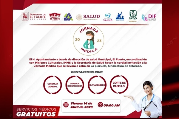 Sumado a esta actividad, la Dra. Grecia Marsella Acosta Ruiz, informó sobre la realización de una Jornada Médica, en coordinación con DIF El Fuerte, Secretaria de Salud y IMMS Bienestar y más dependencias, en beneficio de los pobladores de esta sindicatura ese mismo día, donde se ofrecerá consultas de medicina general, odontología, nutrición, toma de glucosa, ultrasonidos, entrega de medicamento, cortes de cabello, entre otros servicios, totalmente gratuitos.