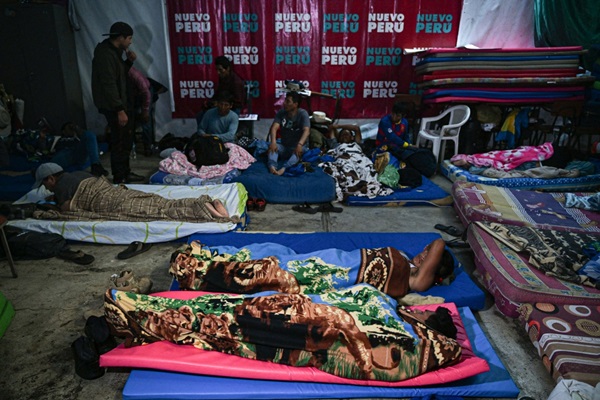 Lima. Colchonetas en el suelo, pasillos abarrotados y filas para desayunar. Decenas de campesinos despertaron en un vetusto local tras