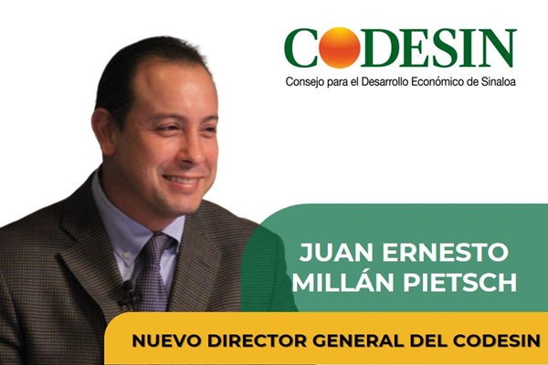 Juan Ernesto Millán Pietsch fue designado por el pleno del Consejo para el Desarrollo Económico de Sinaloa, como nuevo director general del organismo. Ocupa la posición tras la salida de Karina Parra y Parra, quien recientemente fue nombrada titular del Centro Estatal de Prevención Social de la Violencia y la Delincuencia con Participación Ciudadana del Secretariado Ejecutivo del Sistema Estatal de Seguridad Pública.