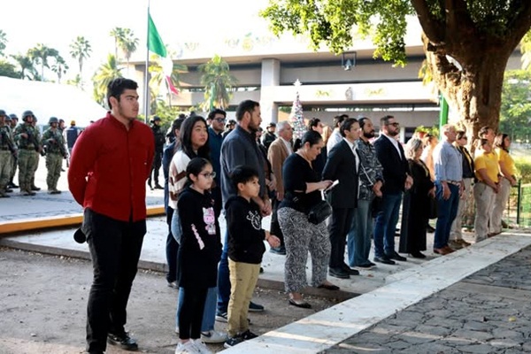 El acto conmemorativo se llevó a cabo en la explanada de Palacio de Gobierno, donde autoridades de los tres órdenes de gobierno, civiles y militares, hicieron honores a la bandera y entonaron el Himno Nacional, para después presenciar el izamiento a toda asta de nuestro lábaro patrio.