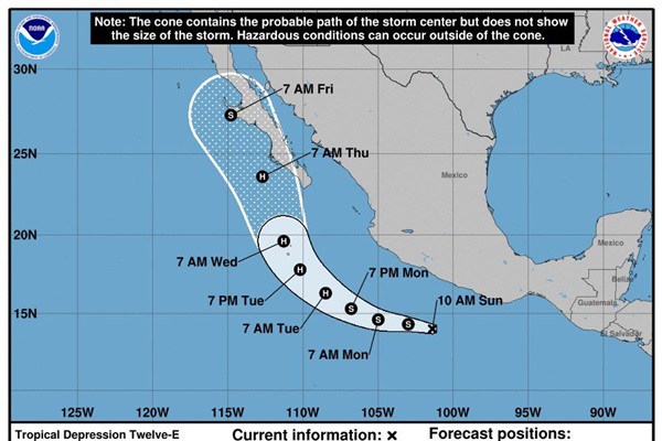 Depresión Tropical 12-E traería lluvias a Sinaloa