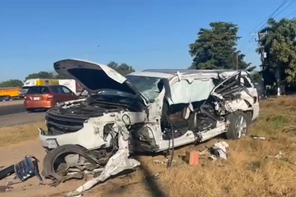 En el percance participo un camión de pasajeros de la línea Norte de Sinaloa que viajaba de Norte a Sur y en las inmediaciones de Gabriel Leyva se le atravesó un tráiler, el conductor para evitar el impacto invadió el carril contrario chocando con una camioneta Chevrolet de la línea Suburban color blanco.