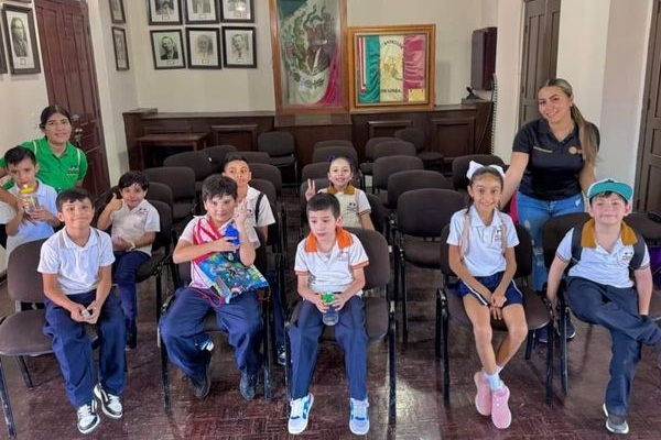 Las niñas y niños del Colegio Montesclaros durante su recorrido, conocieron más sobre el funcionamiento de nuestro ayuntamiento y la importancia de trabajar juntos por el bienestar del municipio.