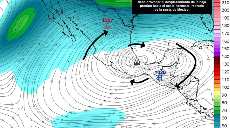 Sin embargo, el análisis más reciente realizado por #MeteoMex determina que la aproximación y el desarrollo de un sistema anticiclónico deberán mantener a la baja presión alejada de las costas de #Guerrero y #Oaxaca, desplazándose hacia el oeste-noroeste durante los próximos días.
