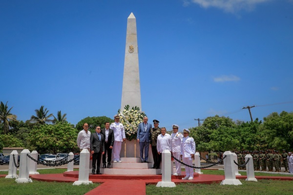 Como parte de la ceremonia, el gobernador Rocha y el almirante Abarca, encabezaron la guardia de honor y colocación de ofrenda floral en el Monumento al Marino Caído, junto con las demás autoridades invitadas, mientras la Banda de Guerra de la Escuela Náutica Mercante de Mazatlán, entonó marcialmente el Toque de Silencio.