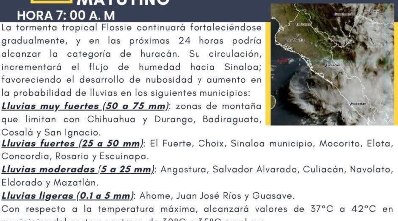En cuanto a la tormenta tropical Flossie, continuará fortaleciéndose gradualmente y podría alcanzar la categoría de huracán en las próximas 24 horas.
