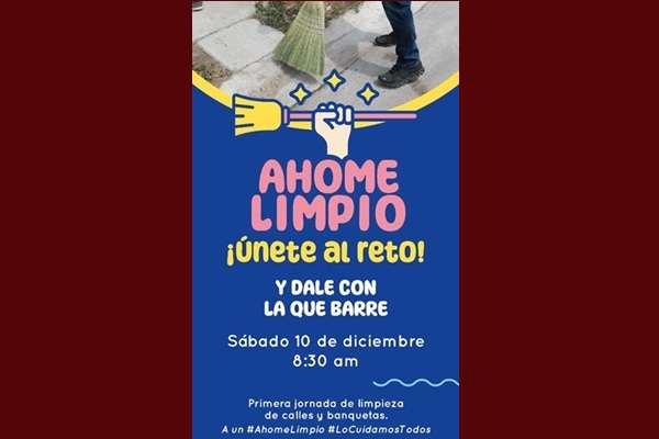 Recalcó la invitación a todos los ahomense para que participen en esta jornada de limpieza el día sábado 10 de diciembre a las 8:30 horas, donde cada quien se encuentre.
