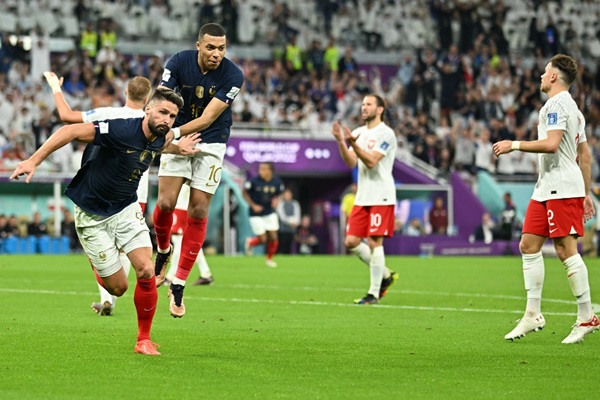 El primer gol llegó en la última jugada antes del descanso, cuando Mbappé deslumbró con un pase soberbio entre los centrales polacos y Giroud (44) se impuso al guardameta Wojciech Szczesny con un disparo cruzado y raso.