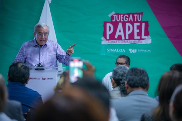 Culiacán, Sinaloa, a 12 de junio de 2023.- En el marco del Día Mundial de la Lucha Contra el Trabajo Infantil y como parte de las estrategias estatales para combatirlo, este lunes el Gobernador Rubén Rocha Moya encabezó el arranque de la campaña «Juega tu papel contra el maltrato infantil», instrumentada por el Sistema DIF Sinaloa que preside Eneyda Rocha Ruiz, en coordinación con el Sistema DIF Nacional, la cual, bajo la premisa de «Te doy lo que necesitas y respeto tus derechos», tiene por objetivo identificar la necesidad específica de los menores trabajadores y sus familias, para ayudar a resolver la situación de origen que impulsa esta acción, atendiéndola de manera transversal, en pleno respeto de sus derechos.