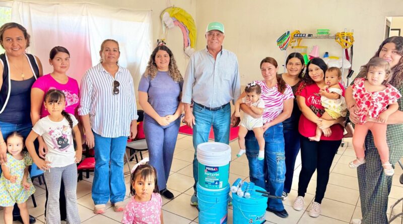 El Fuerte, Sinaloa, a 24 de octubre del 2025.- Con el propósito de fortalecer los espacios dedicados al desarrollo integral de la niñez fortense, el presidente municipal Gildardo Leyva Ortega, acompañado por la presidenta del Sistema DIF El Fuerte, Laura Ledezma Godínez, visitó las instalaciones del Centro de Primera Infancia del municipio, donde realizó la entrega de cubetas de pintura e impermeabilizante para mejorar las condiciones del lugar.