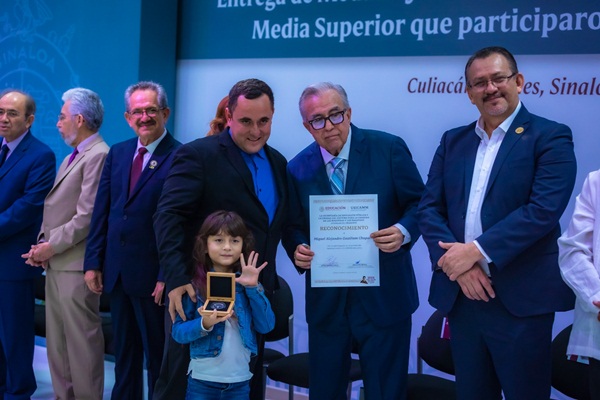 Acompañado por la secretaria de Educación Pública y Cultura, Gloria Himelda Félix Niebla; y por ambos dirigentes del Sindicato Nacional de Trabajadores de la Educación (SNTE), Secciones 53 y 27, Ricardo Madrid Uriarte, y Genaro Torrecillas López, respectivamente, el mandatario estatal entregó este reconocimiento a cada de las 140 maestras y maestros, en la Sala Rina Cuellar, del Edificio Justo Sierra, de la SEPyC.