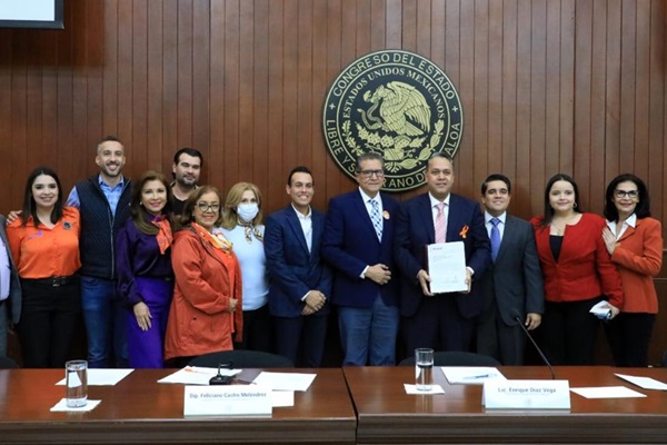 El secretario Díaz Vega entregó el documento al presidente de la Comisión de Hacienda Pública y Administración, el diputado Jesús Alfonso Ibarra Ramos, en compañía también del presidente de la Mesa Directiva, diputado Ricardo Madrid Pérez; y del presidente de la Junta de Coordinación Política, diputado Feliciano Castro Meléndrez, iniciativa que habrá de ser revisada y analizada por los legisladores para su aprobación y/o modificación que consideren.