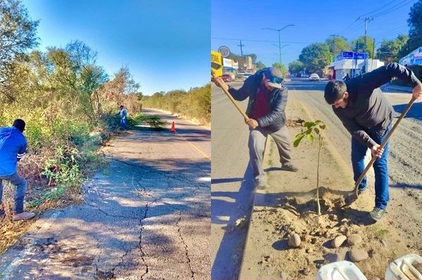 Gobierno de El Fuerte emprende campaña de limpieza y reforestación de carreteras