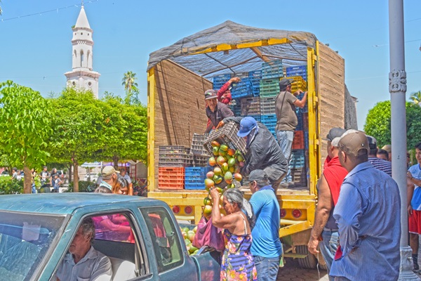 En la entrada del Palacio Municipal, llegó un camión lleno con esta fruta y fue descargado en diferentes vehículos para iniciar el traslado a las comunidades, la entrega estará a cargo de DIF El Fuerte, síndicos y gestores.