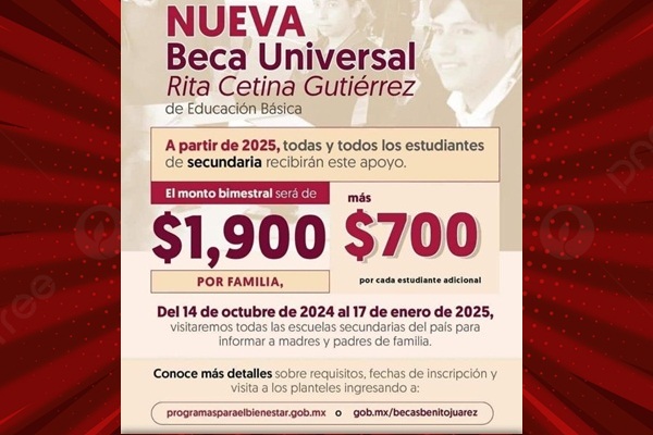 Más información en la página www.becaritacetina.gob.mx se abrirá a las 14:00 pm (Hora del centro).