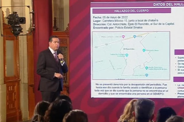 Mejía Berdeja dijo que desde el momento en que se encontró el cuerpo, hubo contacto entre la Secretaría de Seguridad y Protección Ciudadana (SSPC) y la fiscalía del estado de Sinaloa para tener colaboración en las investigaciones.