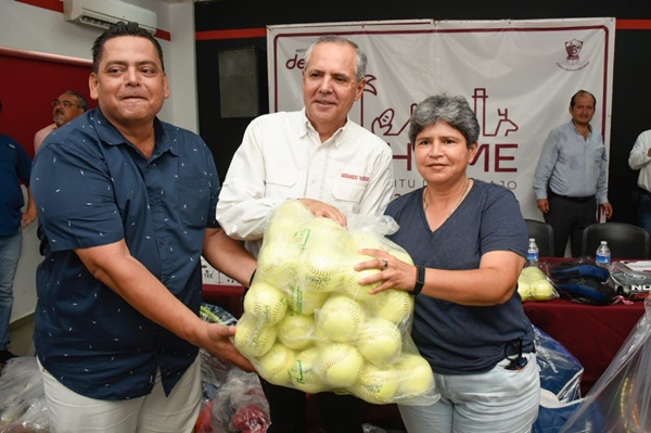 El Presidente Municipal, Gerardo Vargas Landeros, hizo entrega de la primera etapa del material deportivo con una inversión total de 140 mil pesos, a los titulares de cada disciplina en Ahome