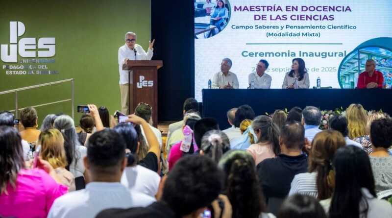 Culiacán, Sinaloa 20 de septiembre de 2025.- Comprometido con los nuevos modelos de enseñanza y el fortalecimiento de la mejora continua del profesorado sinaloense, encaminado a la excelencia de la Educación Básica en el campo formativo de saberes y pensamiento científico, el Gobernador Rubén Rocha Moya, inauguró el programa educativo de Maestría en Docencia de las Ciencias, Campo Saberes y Pensamiento Científico (modalidad mixta), que será impartida en la Universidad Pedagógica del Estado de Sinaloa.