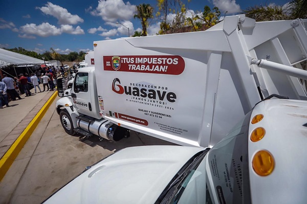 Durante este evento, el gobernador Rocha le hizo entrega al alcalde Martín Ahumada de 10 camiones recolectores de basura para el Ayuntamiento, tres de los cuales fueron adquiridos directamente por el Gobierno estatal en apoyo a las finanzas del municipio.
