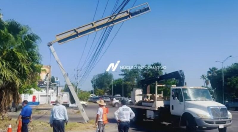 Los Mochis, Sinaloa.- La Dirección de Vialidad y Tránsito, en coordinación con Obras Públicas y la Comisión Federal de Electricidad (CFE), iniciaron esta mañana las labores de reparación del semáforo ubicado en el cruce del bulevar Zacatecas y la avenida Independencia, luego de que la madrugada del domingo fuera golpeado, presuntamente, por un tráiler.