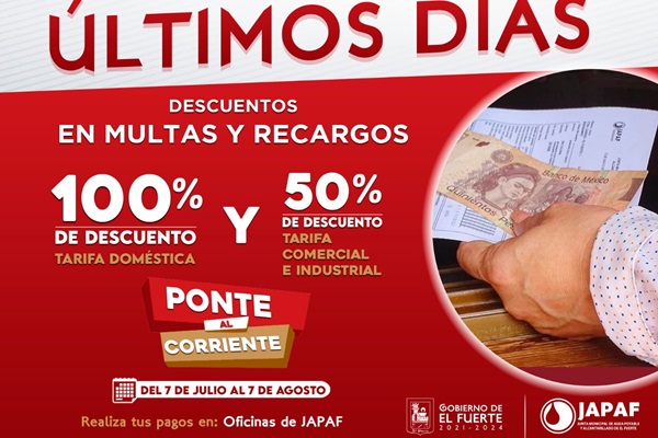 Invita JAPAF aprovechar los últimos días de descuentos en multas y recargos