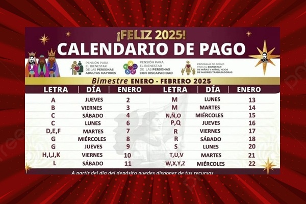 Recuerda que los pagos correspondientes al bimestre ya están programados y para saber la fecha exacta de tu depósito, consulta la primera letra de tu apellido y el día que te corresponde.