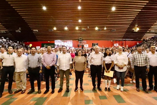 Culiacán, Sinaloa, a 17 de junio de 2023.- Con el Polideportivo Juan S. Millán a su cupo máximo por la presencia de 2000 jóvenes estudiantes de múltiples instituciones de educación pública, este sábado el Gobernador Rubén Rocha Moya dio inicio en Sinaloa a la Jornada Nacional de la Estrategia en el Aula «Si te drogas te dañas», cuyo objetivo es generar un espacio de convivencia entre alumnos de nivel secundaria y media superior, autoridades gubernamentales y educativas para crear consciencia del consumo de drogas y los daños que ocasionan, así como fomentar el desarrollo de habilidades de autocuidado, y toma de decisiones asertivas, para lograr estilos de vida saludables.