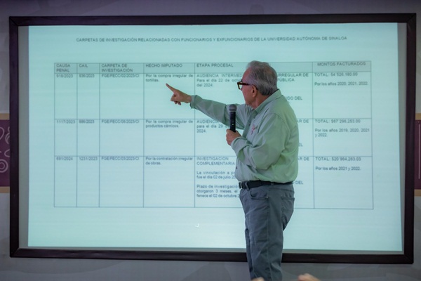 Mencionó además que algunos factores que atentan y violan la autonomía universitaria son la imposición de un partido político, además de grupos de poder que afectan resultados investigativos. El mandatario estatal también se refirió a las carpetas de investigación de presunta corrupción por las irregularidades en la adquisición de alimentos sin licitación y a sobre precio, contratación irregular de obras y servicios, equipos de cómputo y oficina, uniformes, por un monto de más de 410 millones de pesos, que atentan contra el patrimonio y la autonomía universitaria.