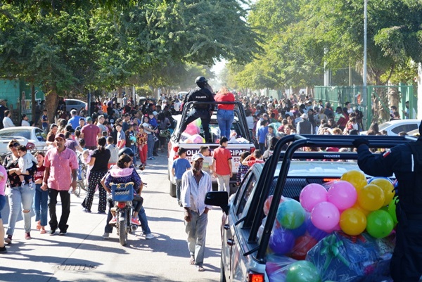 Es el día 24 de diciembre, cuando todo lo recolectado se carga en las patrullas y con el Policlaus montado en su cuatrimoto, encabezando la caravana, realizan el recorrido, primeramente, por las calles de la ciudad, para posteriormente internarse en los lugares en donde habitan las familias de escasos recursos y que en esta época no podrán dar un regalo a los reyes del hogar.