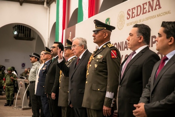 Esta importante imposición de insignias fue encabezada por el General Brigadier D.E.M. David Estudillo Urrea, Jefe de Estado Mayor de la 9a Zona Militar, Coronel de Infantería D.E.M. Alfredo González Cuevas, Comandante del 94 Batallón de Infantería, Enrique Inzunza Cázarez, Secretario General de Gobierno, José Alfredo García Castro, Inspector General de la Guardia Nacional, Carlos Alberto Hernández Leyva, Subsecretario de Seguridad Pública Estatal, Teniente Coronel F.A.M. Gerardo Calvo Cuevas, Ricardo Madrid Pérez, Presidente de la Mesa Directiva del Congreso y Érika Socorro Valdez Quintero, Magistrada del Supremo Tribunal de Justicia.