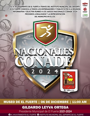 El Fuerte, Sinaloa 04 de diciembre de 2023.- El H. Ayuntamiento de El Fuerte a través del Instituto Municipal del Deporte, hacen una atenta invitación a los deportistas fuertenses y estén informados sobre el proceso a seguir para participar en los Juegos Nacionales CONADE 2024.