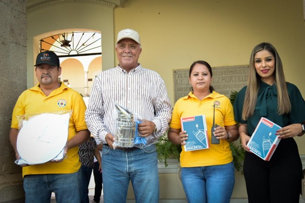 El equipo que fue entregado son, radios de comunicación, guantes, ahumadores y trajes especiales para abejas, dicho acto se llevó a cabo en la entrada de Palacio Municipal.