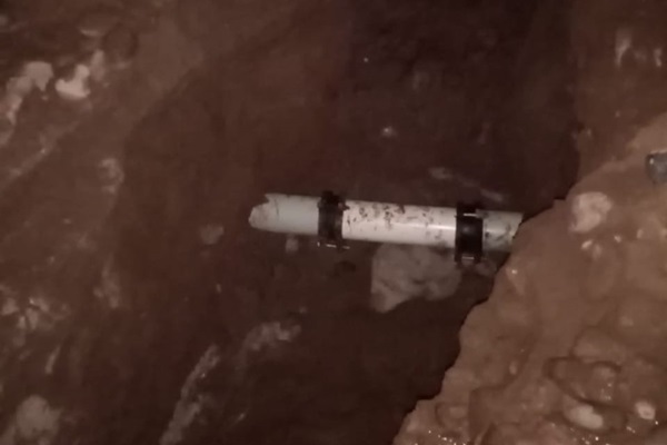 Se reventó un tubo, para no suspender el servicio y evitar el desperdicio de agua potable, el personal trabajó en la noche para repararla