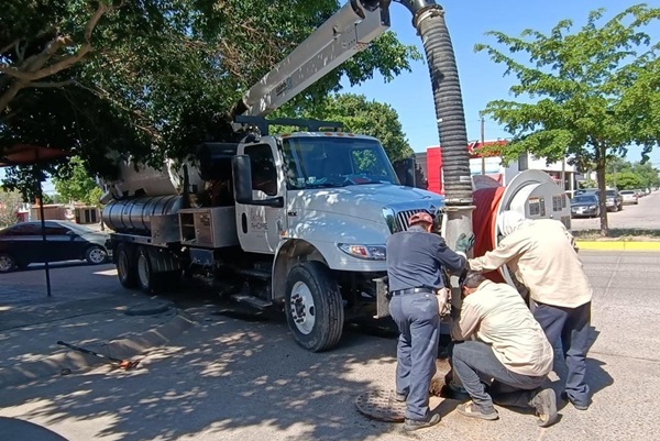 Los Mochis, Sinaloa.- La Junta de Agua Potable y Alcantarillado del Municipio de Ahome realizó trabajos de desazolve en diversos puntos de la red de alcantarillado sanitario de la colonia Estrella, ya que tras las recientes lluvias, se registraron afloramientos de aguas negras, indicó el Gerente General, Raúl Pérez Miranda.