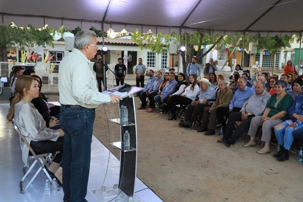 El evento tuvo lugar en la entrada del pueblo de La Higuerita, justo frente al panteón, donde el gobernador Rocha recordó que tiene sepultados a tres de sus cuatro abuelos maternos y paternos, y otros familiares.