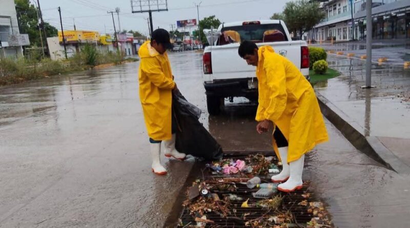 Los Mochis Sinaloa. 13 de Octubre de 2025.- Desde la madrugada de este domingo, las cuadrillas y personal de diversas dependencias municipales trabajan de manera conjunta para mantener libres todos los pasos de agua para evitar mayores inundaciones y afectaciones.
