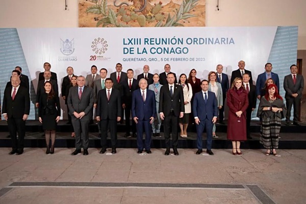 Santiago de Querétaro, Querétaro, a 05 de Febrero de 2023.- Desde la histórica Casa de la Corregidora que aglutinó a 18 mandatarios estatales en el marco de la LXIII Reunión Ordinaria de la Conferencia Nacional de Gobernadores (CONAGO), el Gobernador Rubén Rocha Moya comentó que uno de los primeros acuerdos obtenidos como resultado del consenso general, fue la instalación de una mesa de trabajo encabezada por Salomón Jara Cruz y Mauricio Vila Dosal, Gobernadores de Oaxaca y Yucatán respectivamente, actuales Presidente y Vicepresidente de Conago, para efecto de hacer una revisión integral de este foro permanente que busca fortalecer el federalismo mediante mecanismos democráticos, manteniendo pleno respeto de las instituciones de México.