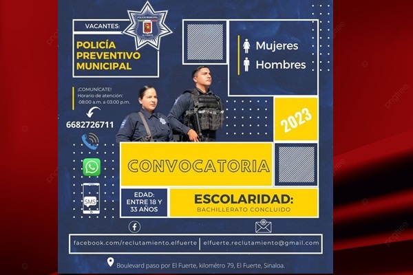 Seguridad Pública lanza convocatoria para policía municipal de El Fuerte