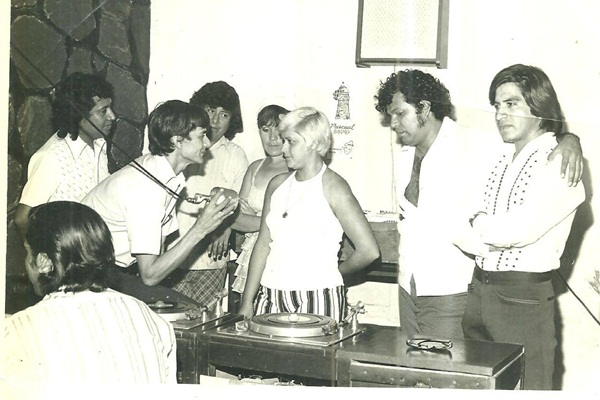 En la segunda fotografía aparece el ídolo Leo Dan y el locutor Juan José Ahumada «chejuan» en la cabina de la radiodifusora XECW «Radio Variedades» de Los Mochis.