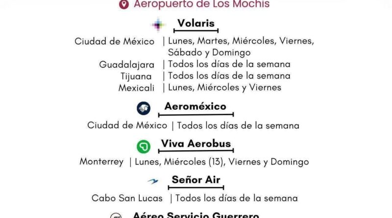 Te presentamos la frecuencia de vuelos saliendo desde Los Mochis